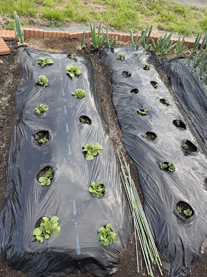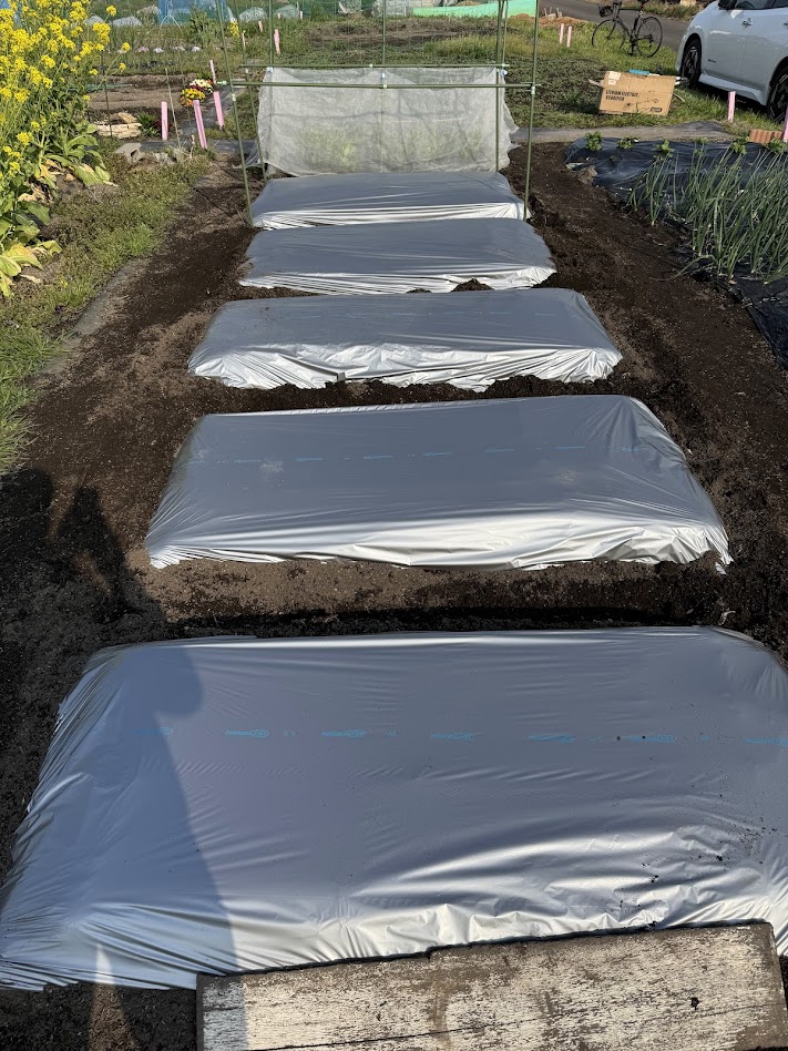 シルバーマルチを被せて、あとは苗を植えるだけです。