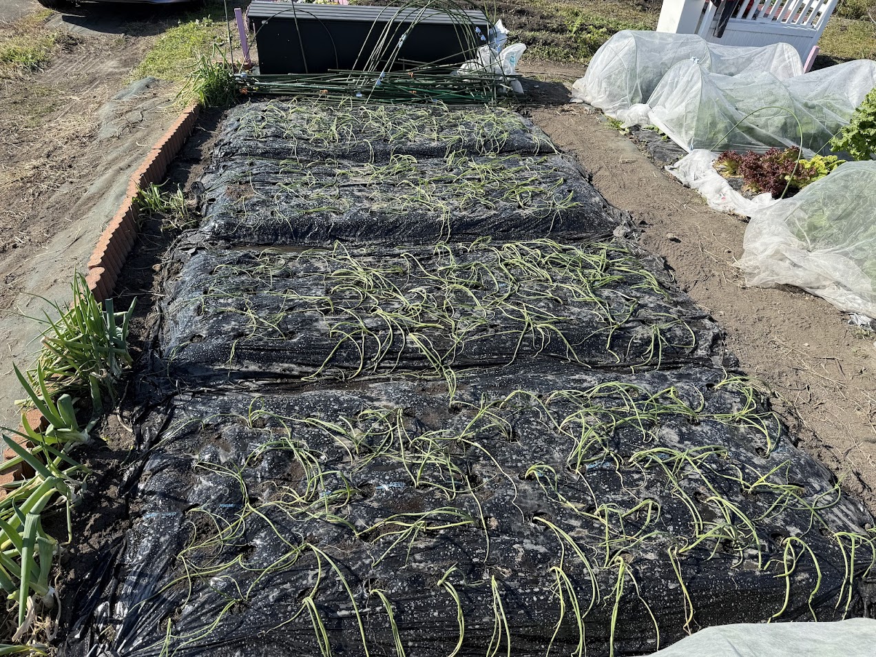 そして来年に向けて、サツマイモのあとにタマネギの苗を250本植えました。
